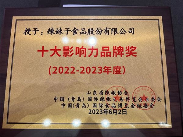 借著辣椒迅猛發(fā)展的勢頭,山東省辣椒協(xié)會、青島市辣椒產(chǎn)業(yè)商會、中國食品工業(yè)協(xié)會、山東省食品工業(yè)協(xié)會共同舉辦2023中國(青島)國際辣椒交易博覽會和2023第二十屆中國(青島)國際食品博覽會。本次會議以新食尚、新食機(jī)、擴(kuò)內(nèi)需、促循環(huán)為主題,特邀請行業(yè)專家、產(chǎn)業(yè)代表、國內(nèi)外辣椒產(chǎn)業(yè)鏈龍頭企業(yè)代表齊聚一堂,設(shè)置包括前沿分享、主題沙龍、頒獎典禮等多個環(huán)節(jié),全方位、多視角共話辣椒產(chǎn)業(yè)相關(guān)政策。其中在頒獎環(huán)節(jié),辣妹子憑借出眾的品牌影響力和產(chǎn)品研發(fā)創(chuàng)新力,一舉斬獲“十大受歡迎影響力品牌獎”,收獲了來自行業(yè)的高度認(rèn)可。